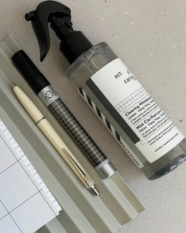 Der Clearing Whiteboard Mist von Act of Caring ist ein sanftes und sicheres Produkt, mit dem Sie alle Kritzeleien von Ihrem Whiteboard beseitigen können. Die natürlichen Öle von Zitrone, Eukalyptus und Ylang-Ylang reinigen Oberflächen wirksam und ohne schädliche Chemikalien. Ihr belebender Duft verströmt Energie und sorgt für eine erfrischende Atmosphäre.