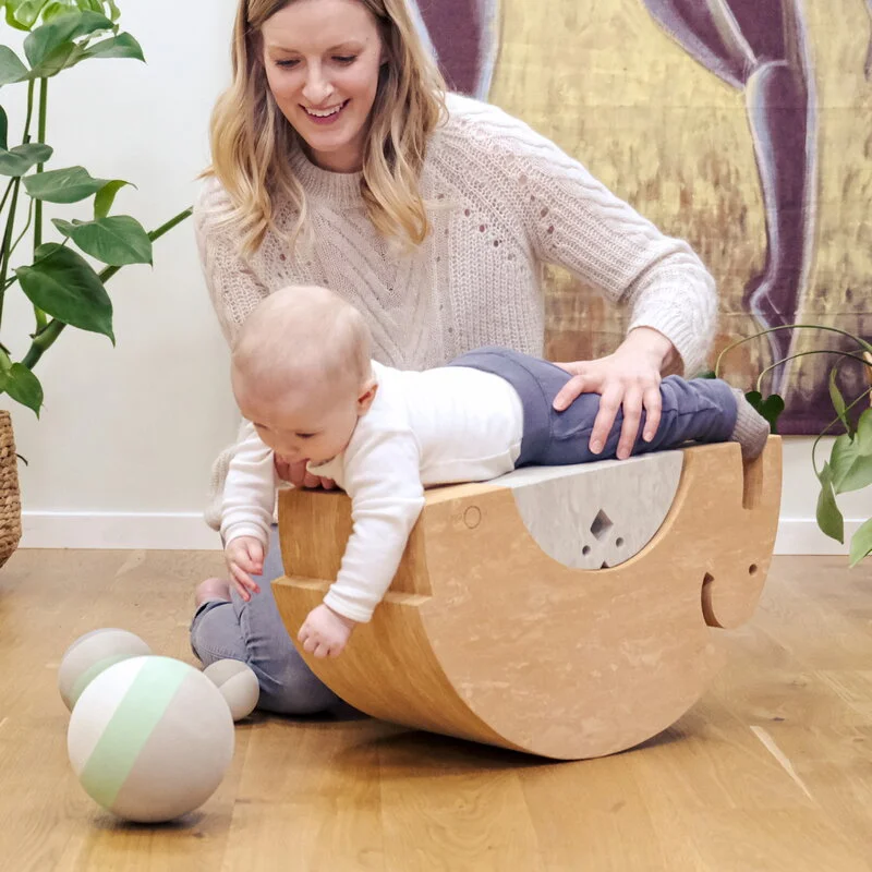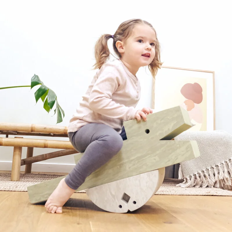 Chicken von bObles ist das ideale Spielzeug für Kinder – und auch Erwachsene –, um zu lernen, wie man das Gleichgewicht hält. Chicken ist für Kinder jeden Alters geeignet: Kleine Kinder können von einer Seite zur anderen geschaukelt werden, während sie auf Chicken liegen oder sitzen, und ältere Kinder können es im Stehen als lustiges Balancebrett benutzen. Chicken ist sogar für Babys geeignet: Wenn sie auf dem Bauch darauf liegen, stärken sie Rücken und Nacken. Wenn Sie Chicken umdrehen, fungiert es als kleiner Sitz.