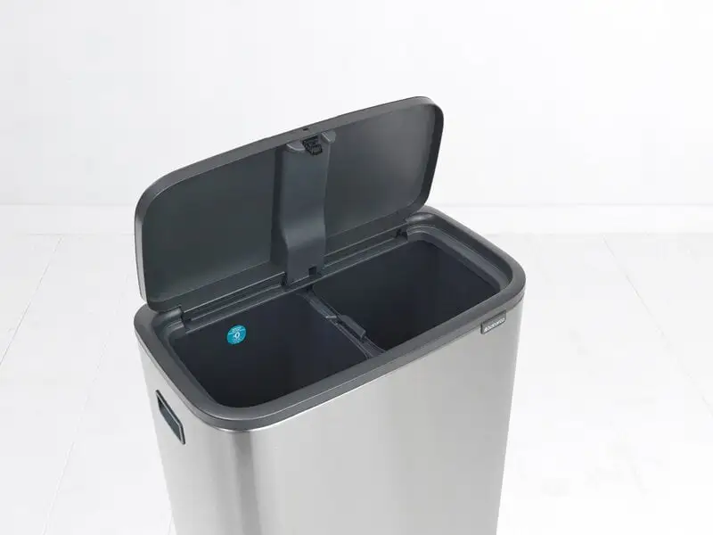 Der Bo Touch Bin Hi von Brabantia ist eine schöne und funktionale Abfalllösung für den Haushalt. Der Bo Touch Bin Hi aus elegantem und langlebigem beschichtetem Stahl ist mit zwei separaten Innenbehältern und einem geräuschlosen und geruchsfreien Deckel ausgestattet, der sich einfach durch sanftes Berühren öffnet. Dank seiner rechteckigen Form lässt sich der Bo Touch Bin Hi leicht an der Wand platzieren, und sein rutschfester Boden macht den Behälter stabil und schützt den Boden. Die verstellbaren Füße verleihen dem Bo Touch Bin Hi ein luftiges Aussehen und eine angenehme Höhe. Den Abfalleimern aus der Bo-Kollektion wurde im Rahmen der Cradle-to-Cradle-Zertifizierung der Bronze-Level verliehen. Sie werden in Belgien hergestellt und verfügen über eine 10-jährige Garantie.
