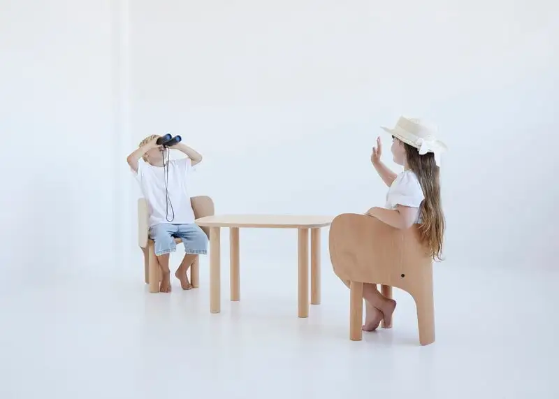Der Stuhl Elephant der dänischen Designfirma EO bringt Freude ins Kinderzimmer und erfreut mit seinem schlichten Design auch das Auge eines Minimalisten. Der von dem französischen Designer Marc Venot entworfene Stuhl Elephant steht fest auf zwei Holzbeinen und einem Stamm und wurde komplett aus europäischem Buchenholz gefertigt. Die großen, geschwungenen Ohren des Elefanten bieten eine solide Stütze zum Sitzen und Anlehnen, und der niedliche Stuhl ist auch zum Spielen geeignet. Ein perfekte Begleiter für den Stuhl ist der kleine und elegante Tisch Elephant, der ebenfalls von Marc Venot entworfen wurde.