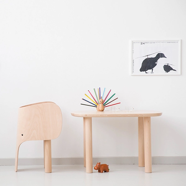 Der Tisch Elephant wurde von dem französischen Designer Marc Venot für das dänische Designunternehmen EO entworfen und besticht durch sein geschwungenes Design und eine schöne Oberfläche aus europäischem Buchenholz. Der niedrige und stabile Tisch ist für das Kinderzimmer konzipiert und lässt sich perfekt mit dem niedlichen Elefantenstuhl kombinieren, der ebenfalls von Venot entworfen wurde. Der Tisch Elephant kann dank seines minimalistischen und eleganten Designs auch als Couchtisch oder als Blumentisch verwendet werden.