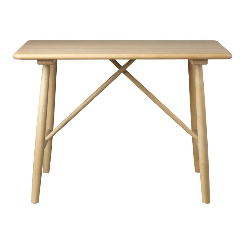 Der aus massiver Buche gefertigte P10-Tisch mit seiner quadratischen Tischplatte ist die perfekte Ergänzung zu Mogensens Stuhl und Bank für Kinder.
