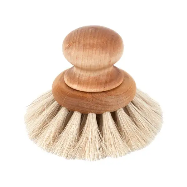 Die runde Spülbürste von Iris Hantverk hat einen angenehmen knaufartigen Griff, der beim Schrubben von Tellern und Töpfen einen guten Halt bietet. Die Bürste ist handgefertigt und besteht aus geölter Birke und stabilem, aber biegsamem Rosshaar.