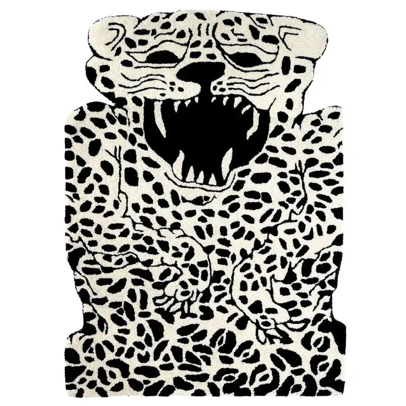 Der Leopard-Teppich von EO bringt ein Gefühl der aufregenden Savanne in Ihr Zuhause. Der eklektische, handgefertigte Teppich ist ein gefleckter Leopard mit einer Vielzahl von lustigen Details, die endlos betrachtet werden können: von unzähligen schwarzen Flecken bis zu den scharfen Zähnen. Der Leopard-Teppich wurde von dem französischen Comiczeichner Helkarava entworfen.