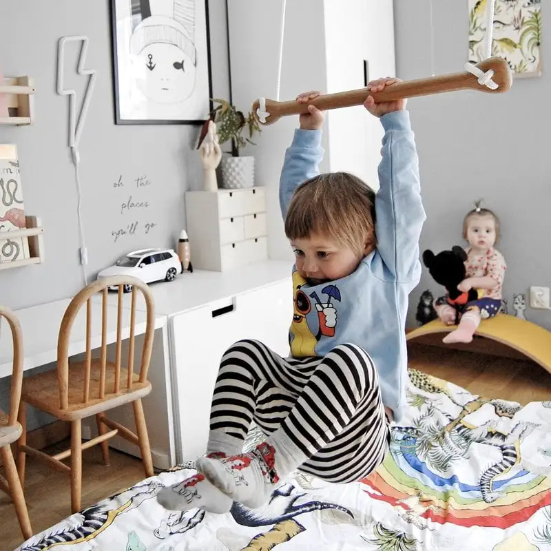 Bone ist ein robustes Trapez von Lillagunga, das speziell für Kinder konzipiert wurde, aber auch für Erwachsene geeignet ist. Das Bone-Trapez hilft bei der Entwicklung von Kraft, Gleichgewicht und Flexibilität und ist eine hervorragende Ergänzung für viele Arten von Räumen, von Kinderzimmern bis zu Büros. Dank eines patentierten Mechanismus zum Einhängen der Seile und zur Höhenverstellung ist das Trapez einfach und sicher zu benutzen. Die eleganten Lillagunga-Produkte werden in Finnland entworfen und hergestellt und sind für eine lange Lebensdauer ausgelegt.