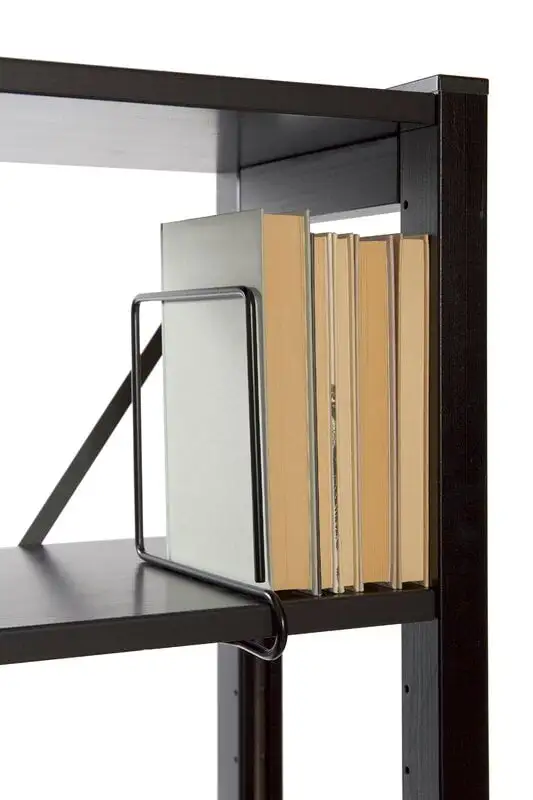 Die Buchstütze Wire von Lundia ist eine schlichte, minimalistische Lösung für die Organisation Ihres Bücherregals. Die Buchstütze ist aus dickem Metalldraht gefertigt, der zu einer geometrischen Form gebogen wurde. Sie können die Buchstütze mit allen Regalböden mit einer Stärke von 15–25 mm verwenden, wie z. B. den Classic-Regalen von Lundia. Die Buchstütze wird am Regal befestigt, indem sie einfach auf den Rand des Regalbodens geschoben wird.
