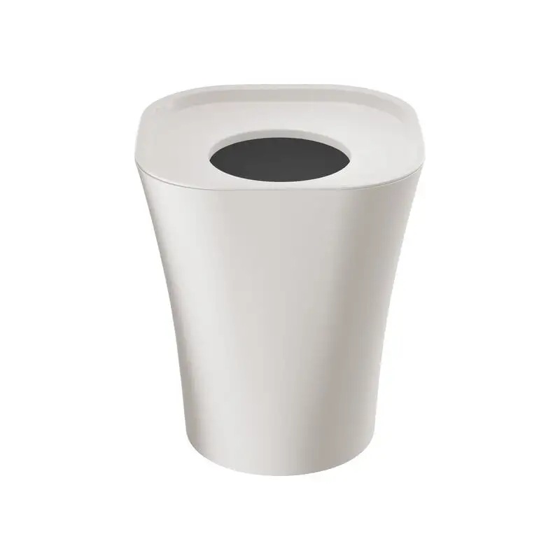 Trash von Magis ist ein stromlinienförmiger Papierkorb, der von Jasper Morrison entworfen wurde. Er verfügt über einen Deckel mit Loch und eine Halterung im Inneren des Papierkorbs, die den Müllbeutel sicher an seinem Platz hält. Die Höhe des Behälters beträgt 28 cm und die Breite an der Oberseite 24 cm. Durch sein minimalistisches Design ist Trash die perfekte Wahl für jeden Raum und jedes Büro.