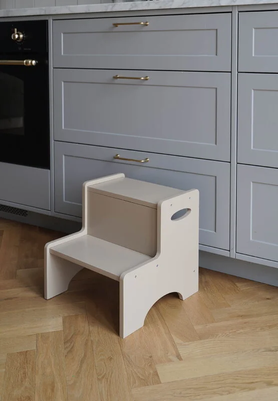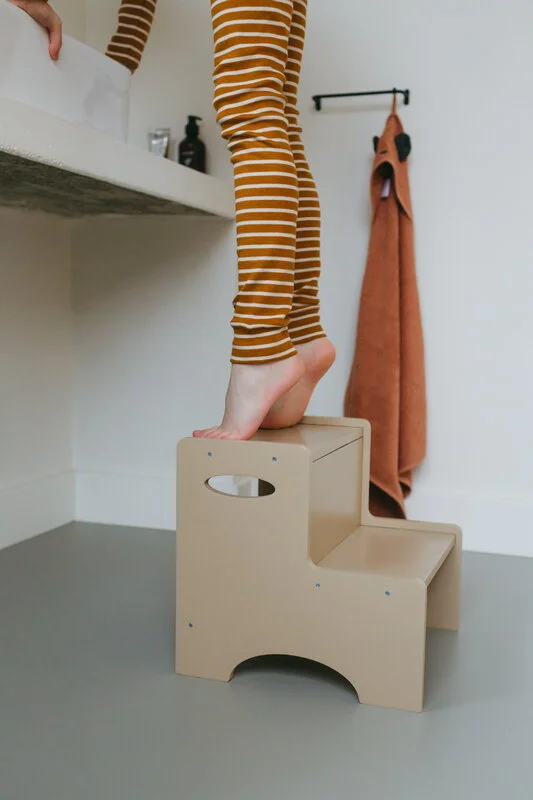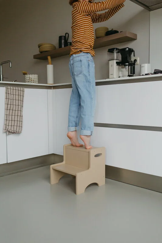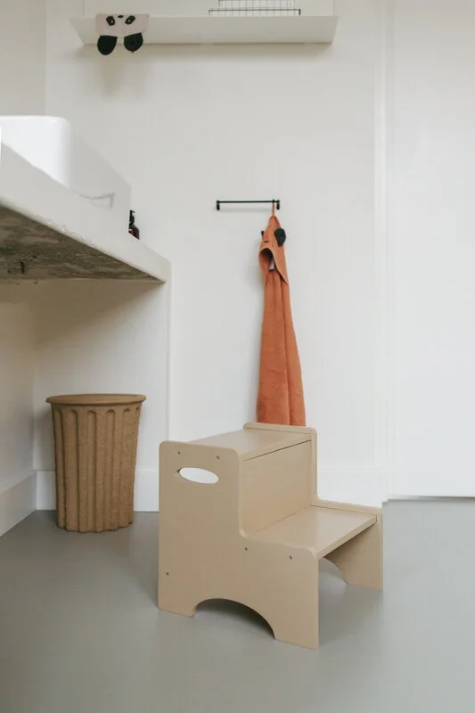 Die „Step Up“-Leiter von NoFred dient kleinen Bewohner:innen als praktischer Helfer bei täglichen Aktivitäten und beim Erreichen großer Ziele. Der hölzerne Tritthocker dient als sicherer Begleiter im Kinderalltag und lässt sich ganz einfach und leicht von einem Raum zum anderen bringen. Die entzückende und minimalistische Trittleiter ermöglicht zusätzliche Höhe im Badezimmer, in der Küche oder im Schlafzimmer und ermutigt das Kind, sich an praktischen Situationen zu beteiligen.