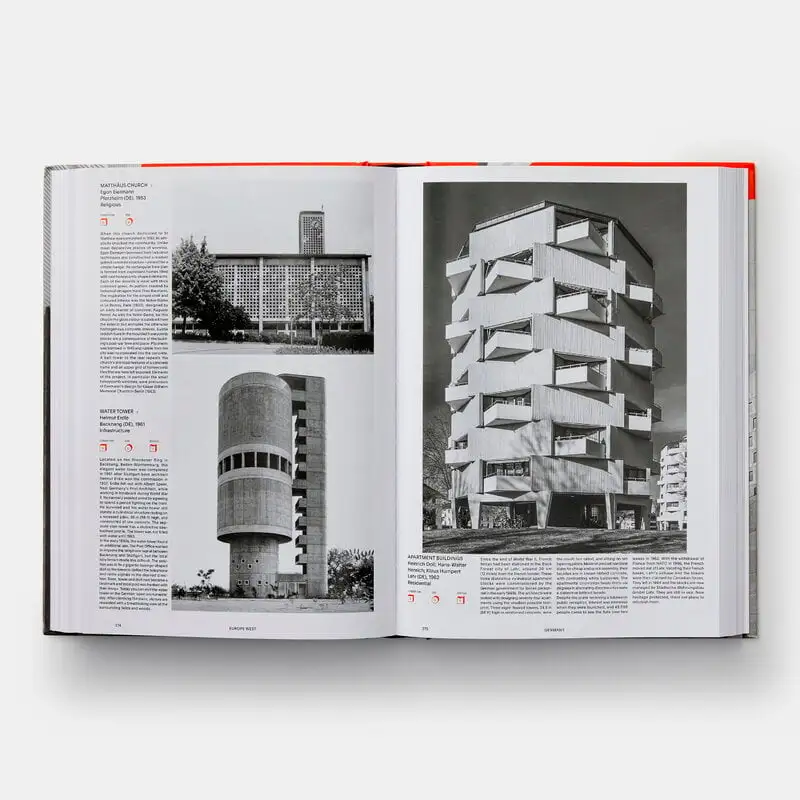 Der Atlas of Brutalist Architecture von Phaidon präsentiert Hunderte von brutalistischen Meisterwerken – bestehende und abgerissene – und ihre Designer:innen aus der ganzen Welt. Mit über 1.000 Fotos und ausführlichen Texten schafft das Buch einen umfangreichen Zeitstrahl zur Geschichte und Gegenwart der brutalistischen Architektur. Der Atlas of Brutalist Architecture wurde von der New York Times als bestes Kunstbuch des Jahres 2018 ausgezeichnet.