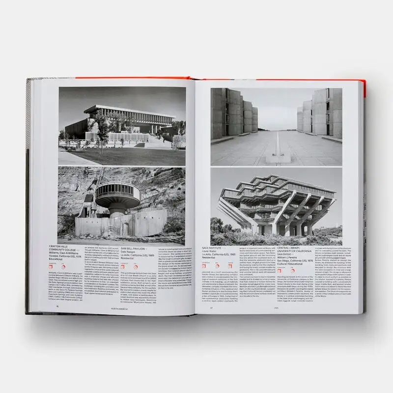 Beliebte Meisterwerke aus Großbritannien und den USA sind neben weniger bekannten Beispielen aus Europa, Asien, Australien und anderen Ländern aufgeführt. Insgesamt werden 102 Länder betrachtet, was beweist, dass der Brutalismus ein wirklich internationales Architekturphänomen war und ist.