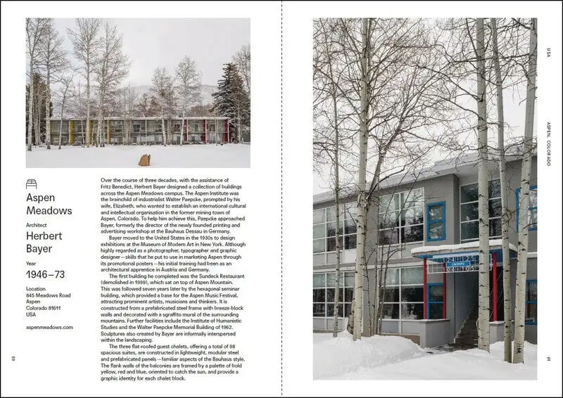 Wer sich für die Moderne interessiert, wird in diesem Guide zu bemerkenswerten Gebäuden berühmter Architekt:innen von Alvar Aalto bis Charlie Zehnder fündig. Mit über 130 einzigartigen Bauwerken aus aller Welt deckt dieses Buch das gesamte Spektrum der modernistischen Prinzipien vom Bauhaus bis zum Brutalismus ab. Die Autorin und Designerin Stefi Orazi wählt Gebäude aus, die für die Öffentlichkeit zugänglich sind und in denen man teilweise sogar übernachten kann.