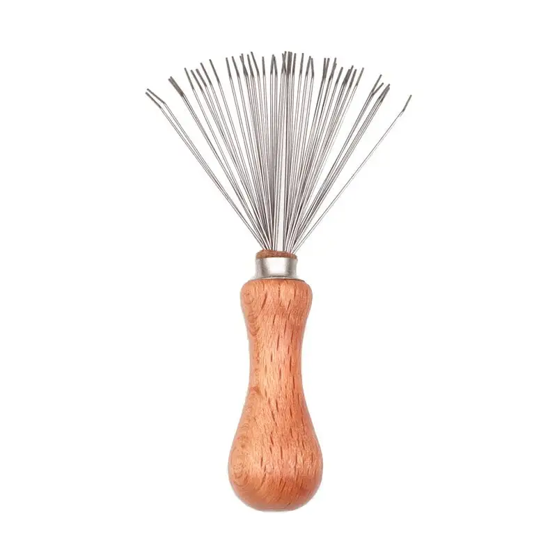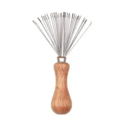 Der Bürstenreiniger von Redecker Bürstenhaus ist wie eine kleine Harke, mit der Sie sowohl Kleiderbürsten als auch Haarbürsten durch Kämmen reinigen können. Der Bürstenreinigungskamm hat Metallborsten und einen schönen Buchenholzgriff, der angenehm in der Hand liegt.