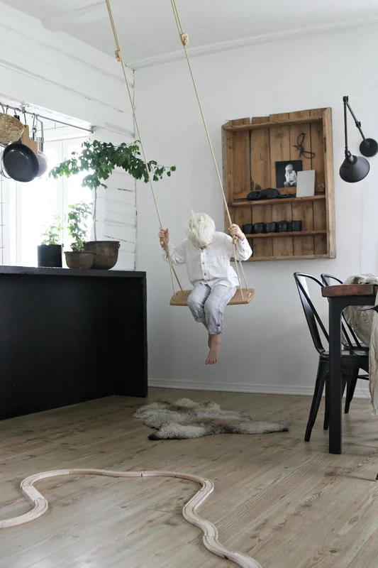 Die Grand-Schaukel von Lillagunga ist die neue Version einer klassischen Holzschaukel, die speziell für erwachsene Kinder und Erwachsene entwickelt wurde. Lillagunga steht für Spiel, Spaß und Entspannung, da das Schaukeln ein perfekter Weg ist, um jung zu bleiben und im Moment zu leben. Aus robustem Massivholz gefertigt, ist die geräumige Grand-Schaukel perfekt für Wohnungen, Büros, Bars und Terrassen. Ein patentierter Mechanismus zum Befestigen der Seile und zum Einstellen der Sitzhöhe macht die Benutzung einfach und sicher. Der Sitz hat fünf Einkerbungen, die für eine stabile Sitzposition und höchsten Komfort sorgen. Die eleganten Lillagunga-Produkte werden in Finnland entworfen und hergestellt und sind für eine lange Lebensdauer ausgelegt.