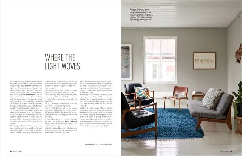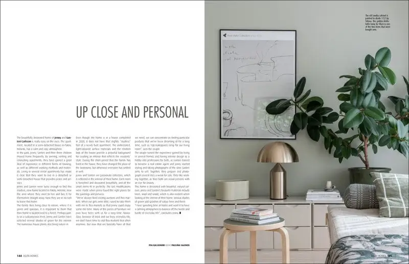 Asun Homes ist eine Mischung aus Zeitschrift und Buch, die auf 184 Seiten all jenen zahlreiche Ideen und Inspirationen bietet, die ein Auge für nordische Wohnkultur haben. Asun Homes wird einmal im Jahr veröffentlicht und orientiert sich am Stil der finnischen Einrichtungszeitschrift Asun.