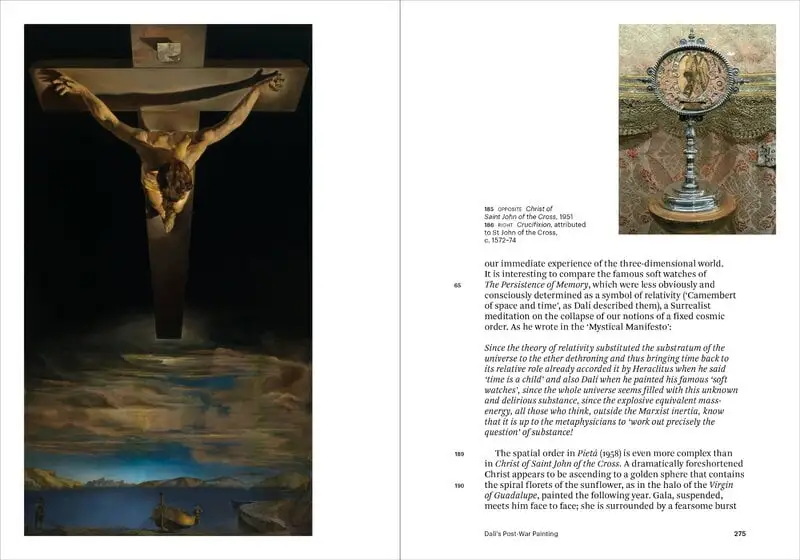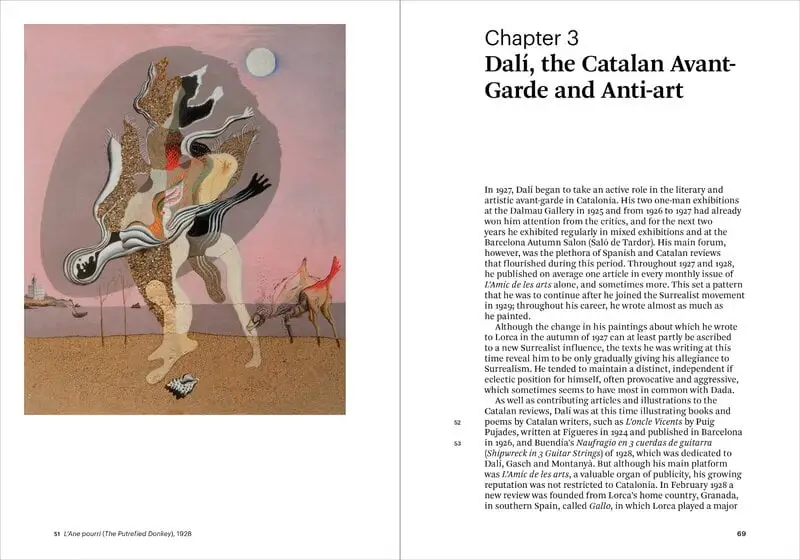 Dieser Text versucht diesen Fragen auf den Grund zu gehen: Er basiert teilweise auf Interviews mit dem Künstler und der für diese Auflage vollständig überarbeiteten, erweiterten und aktualisierten Analyse des Dalí-Phänomens von Dawn Ades. Von seinen frühen Jahre, Künstlerfreundschaften und der Entwicklung seiner Techniken und Stile über seine Beziehung zu Surrealisten und Freudschen Ideen bis hin zu Nachkriegsgemälden betrachtet dieser Text Dalí in einem sozialen, historischen und künstlerischen Kontext und wirft ein neues Licht auf sein komplettes kreatives Spektrum.