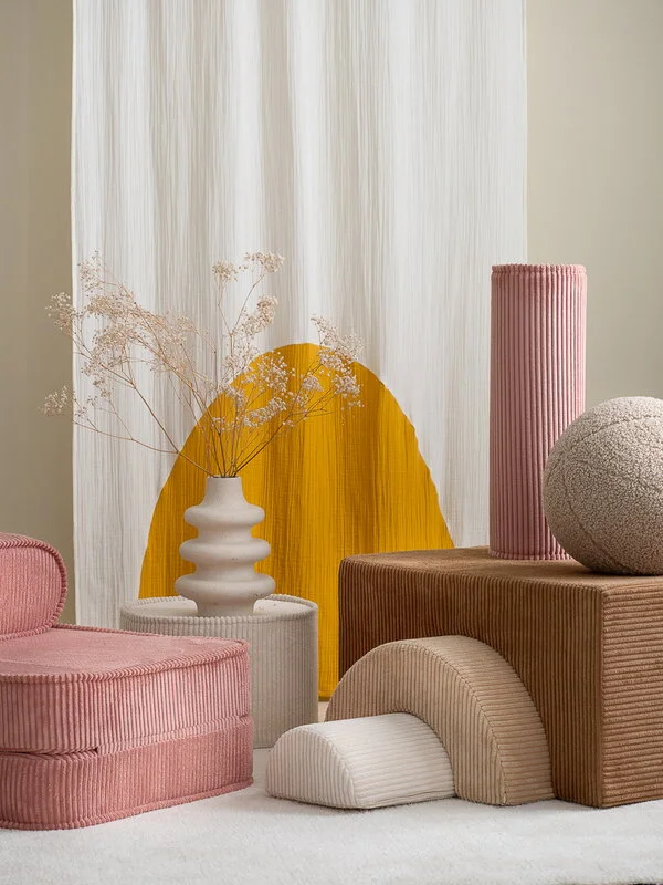 Das Pouf-Set besteht aus zwei unterschiedlich geformten Modulen, die entweder allein oder zusammen verwendet werden können. Die weichen, abnehmbaren Bezüge bestehen aus Cord, der ursprünglich aus recycelten PET-Flaschen hergestellt wurde – das Spielset schenkt also bereits genutztem Kunststoff ein neues Leben. Der umweltfreundliche Pouf sorgt nicht nur im Kinderzimmer für Spielspaß, sondern sieht auch so gut aus, dass es den Erwachsenen nichts ausmacht, wenn die verschiedenen Teile des Sets gelegentlich in andere Räume des Hauses wandern.